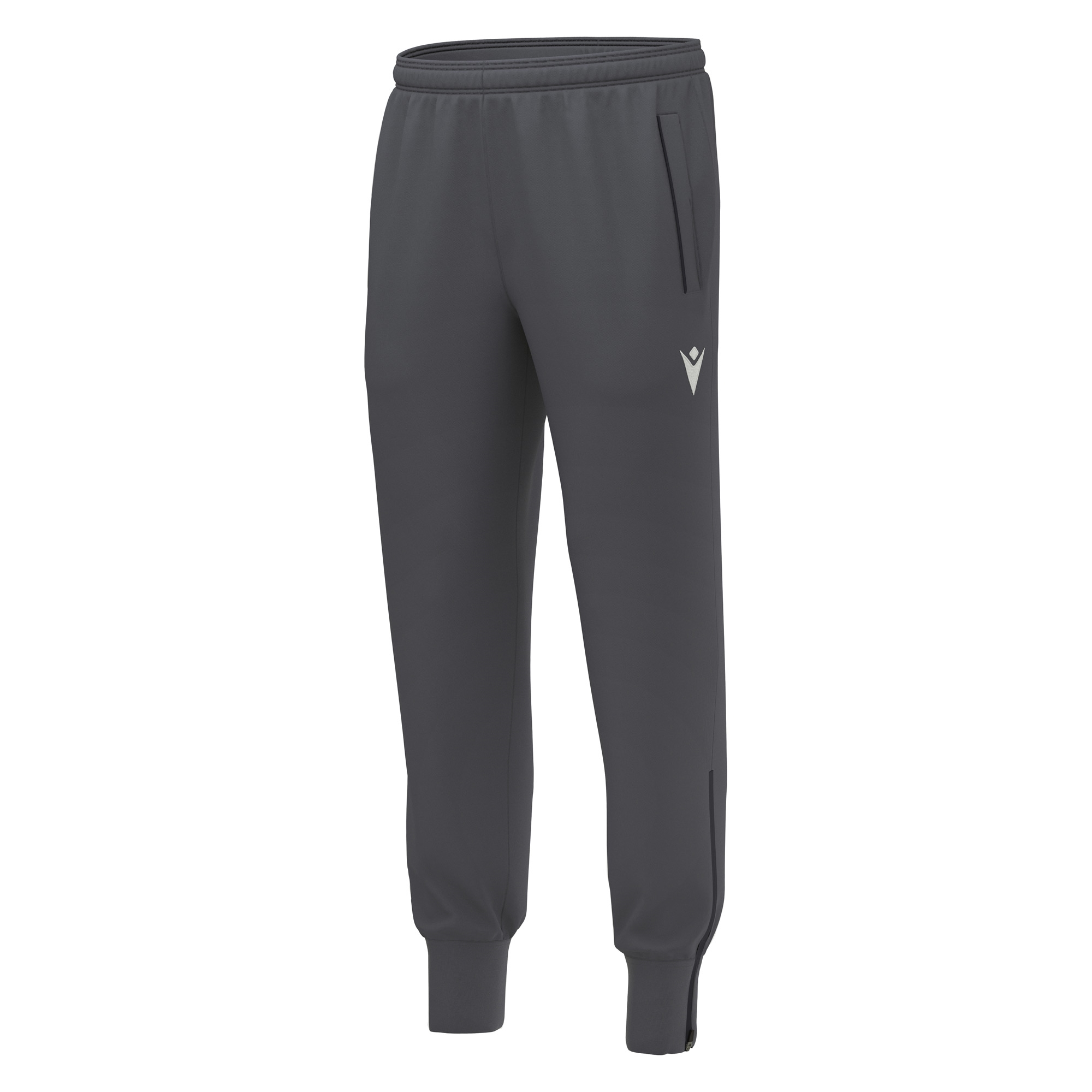 Training pants in Confortex fabric. Complete with a waistband with a flat drawstring, plus side welt pockets with tone-on-tone piping. The ankle cuffs are in knit fabric and feature a bottom opening with a reverse zip and auto-locking slider. Available in 3 colour versions.