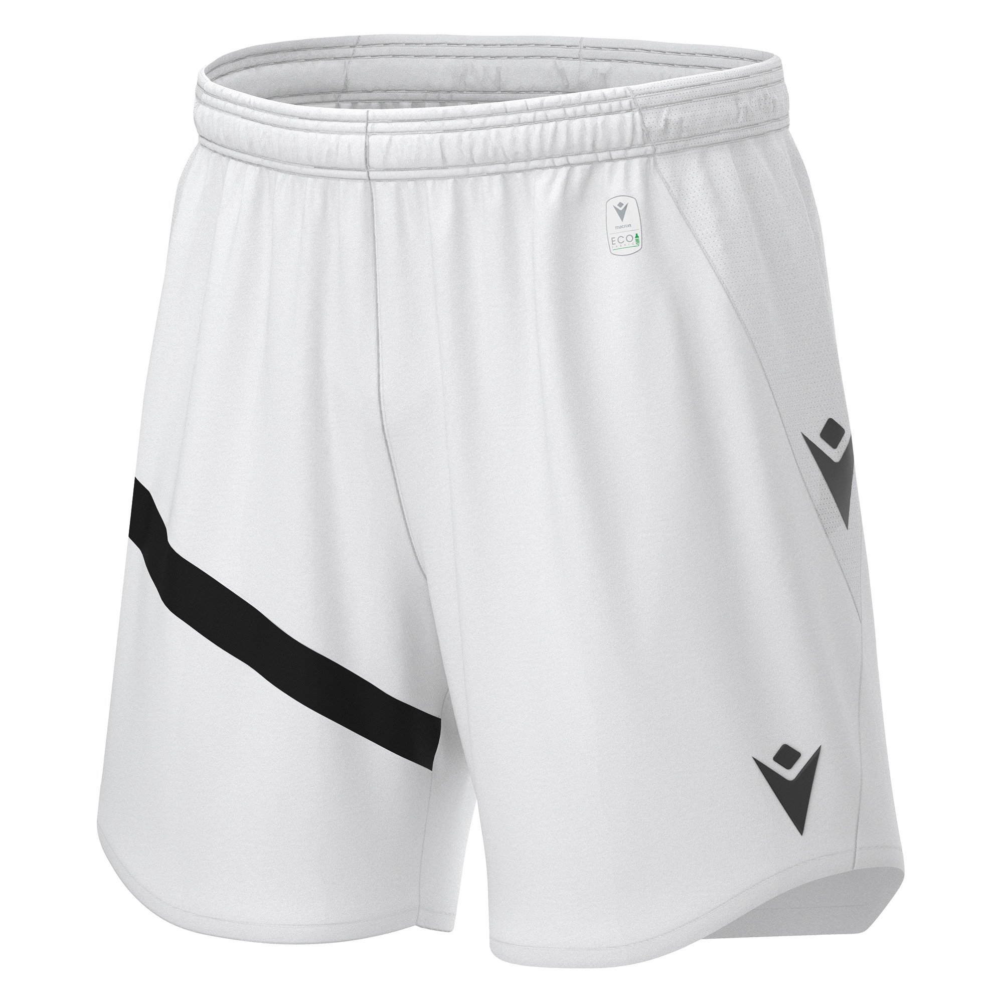 Match day shorts made entirely in Eco Fabric, obtained from 100% recycled PET. Complete with a waistband with a flat drawstring and side inserts in Eco mesh. Featuring asymmetric design and the Macron Hero logo printed in silicone on the front. Available in 16 colour versions.