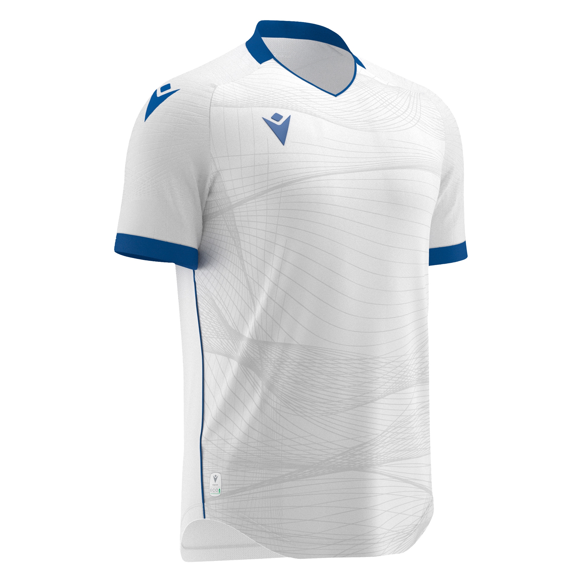 Match day shirt made entirely in Eco-Fabric, obtained from 100% recycled PET. The knitted V-neck has piping on the front. The shirt features a distinctive optical texture which is embossed on the sleeves and dye-sub printed on the front. The Macron Hero logo stands in silicone on front. The Eco-micromesh back guarantees outstanding breathability. Available in 14 colour versions.